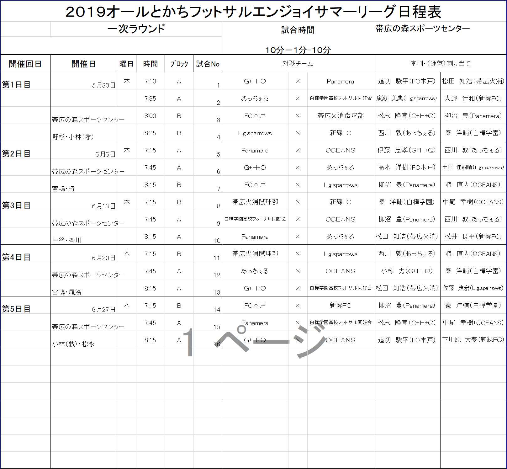 2019エンジョイ 5月30日(木)よりエンジョイサマーリーグが開幕します! 2019.05.23 by 十勝フットサル連盟 5月30日(木)よりエンジョイサマーリーグが開幕します! エンジョイサマーリーグ日程・星取表